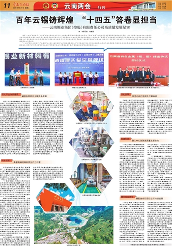 “十四五”期间,云锡坚守“产业报国”初心使命,锚定省委“3815”战略发展目标,以“三年强攻关”五大专项行动为抓手,在现代产业体系建设、科技创新、深化改革、党建引领、履行社会责任五大领域精准发力,实现了从“百年老店”到“行业标杆”的跨越升级,让“世界锡业看中国,中国锡业看云锡”的美誉愈发深入人心。
