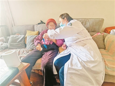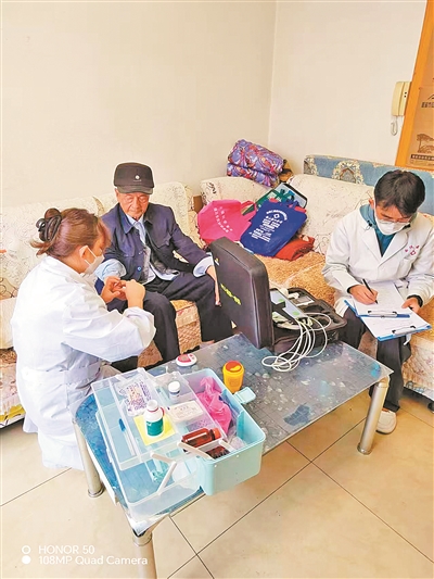 昆明西仪老年病医院开展医疗上门服务,工作人员给行动不便的老人体检。