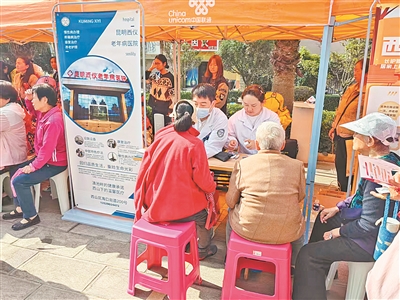 2025年重阳节,昆明西仪老年病医院在昆明市西山区海口街道云光社区为辖区居民测量生命体征。